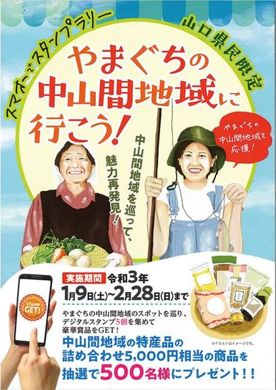 「やまぐちの中山間地に行こう!スマホでスタンプラリー」と「山口を楽しモー〜2021 BINGOスタンプラリー」がいずれも9日から新型コロナウイルスの感染拡大に...