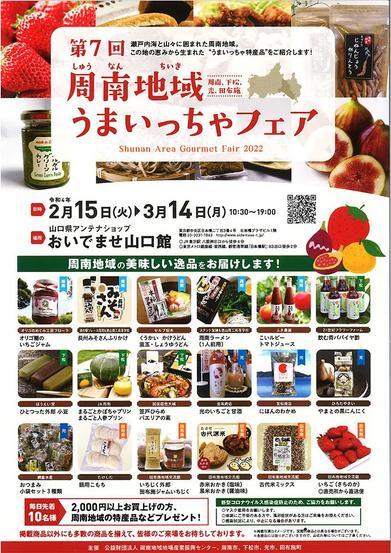 東京都中央区の山口県アンテナショップ、おいでませ山口館で15日(火)から「周南地域うまいっちゃフェア」を開く。3月14日(月)まで。 瀬戸内海と山々に囲まれ...