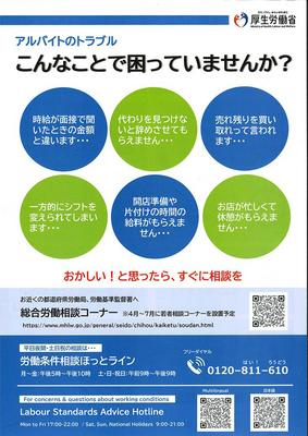 アルバイトの労働条件を確かめよう! [山口労働局]各労基署に若者相談コーナー