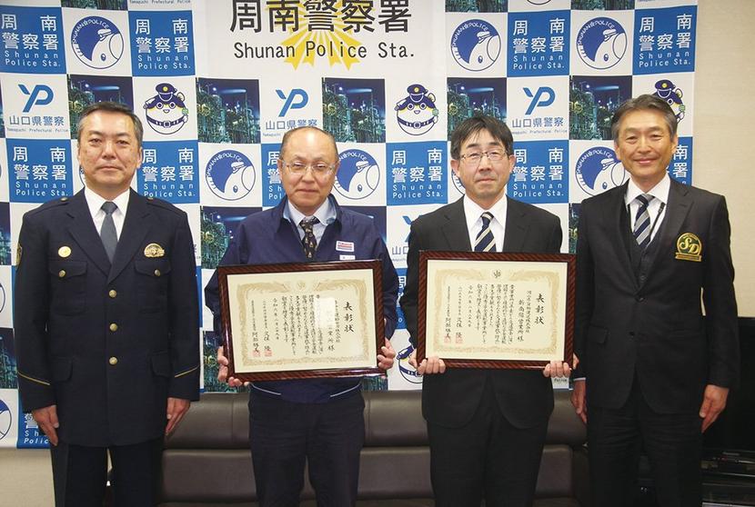 左から久保署長、浦川所長、石橋所長、阿部所長(周南警察署)