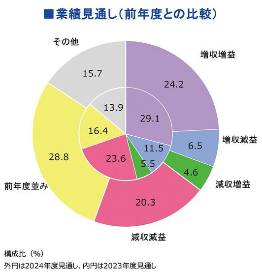 民間の信用調査会社、帝国データバンクが県内に本社がある企業に対し、2024年度の業績見通しに関する意識調査をインターネットで実施した。実績で「増収増益」と答え...