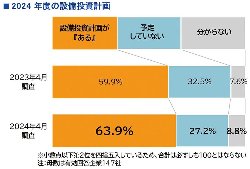 民間の信用調査会社の帝国データバンクが山口県内に本社がある企業に対し、2024年度の設備投資に関する意識調査をインターネットで実施。設備投資が「ある」と回答し...