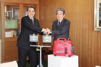【下松市】災害時用に発電機と投光機贈る 県LPガス協が下松市に 小学校給食センターに配置