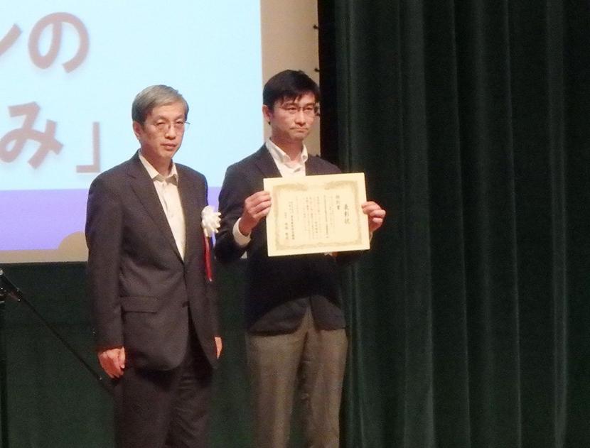 表彰式の斎藤所長(右)=宇部港湾・空港整備事務所提供