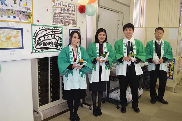 周南市の山口銀行富田支店(糸瀬隆晃支店長)は二十二日で政所三丁目の現在地に移転して五十周年を迎えた。この日は全行員がはっぴを着て来店者を迎え、パンジーの苗やマ...