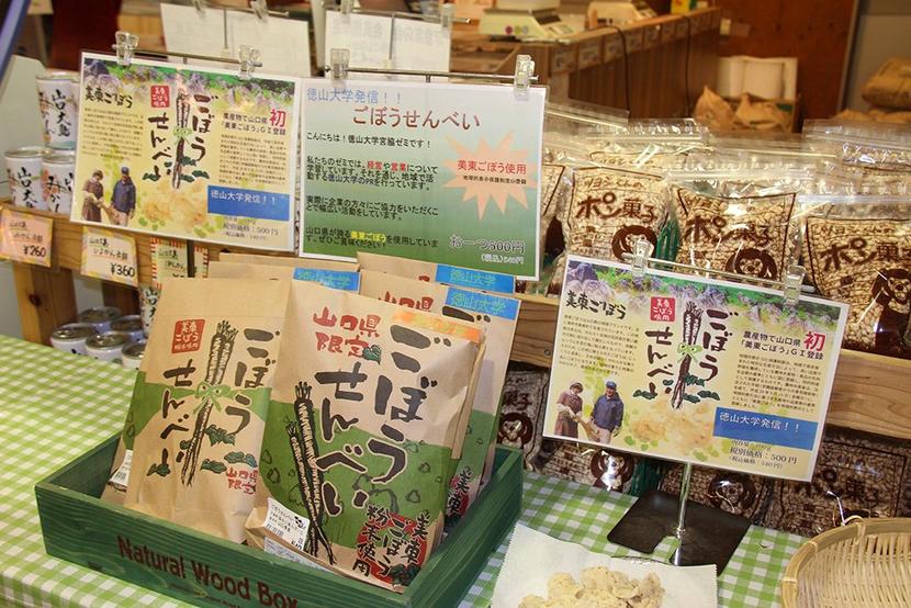 周南市の徳山大学の地域ゼミを受講する学生による「ごぼうせんべい」の試食販売会が15日朝、下松市西柳のJA周南の直売店舗、菜さい来んさい!下松店で開かれた。 ...