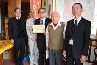 木村市長(左)に目録を渡す堀社長(中央)