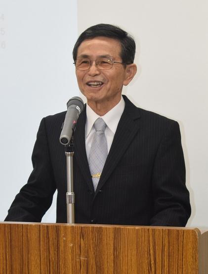 あいさつする信田会長