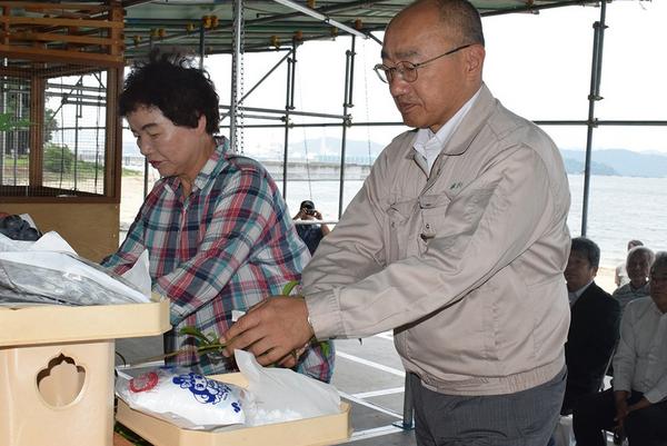 周南市の長田海水浴場が20日(土)オープンした。この日は台風5号の影響による悪天候で海水浴客はいなかったが、20人が出席して海の家で安全祈願祭があった。8月1...