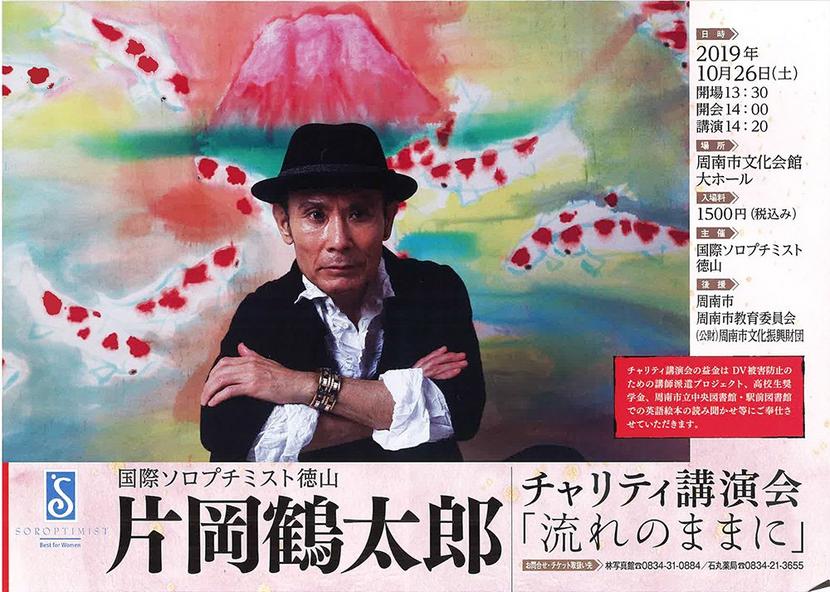 役者、画家、書家などの顔を持つ片岡鶴太郎さんを講師に迎える国際ソロプチミスト徳山(久保栄子会長)のチャリティー講演会「流れのままに」が26日(土)午後2時から...