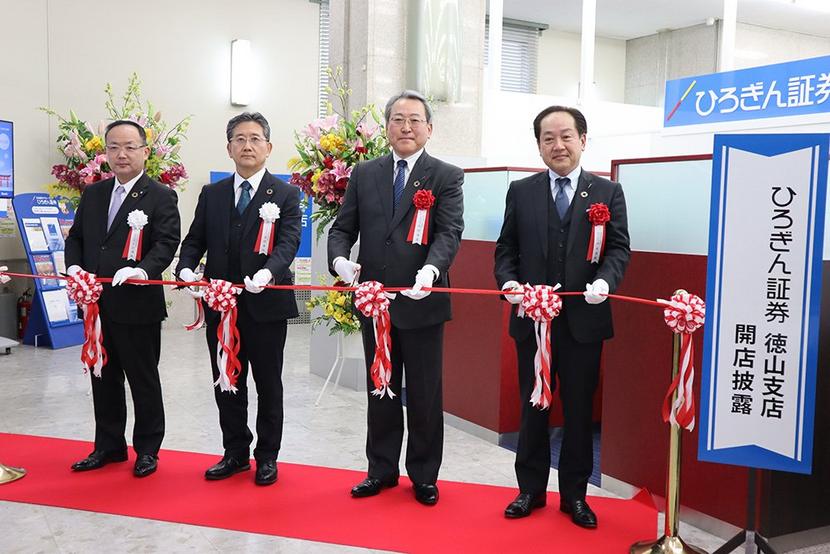 周南市御幸通の広島銀行徳山支店(戸井秀樹支店長)内に17日、ひろぎん証券徳山支店が共同店舗としてオープンした。 平和通にあった店舗が移転し、これまでの同行...