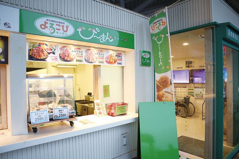 周南市戸田の道の駅「ソレーネ周南」の店舗横のテイクアウトコーナーに1日、カキフライ丼などが楽しめる「よろこびキッチンぴーまん」がオープンした。 同市温田の...