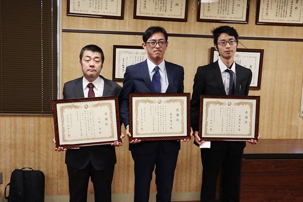 周南市新宿通の市消防本部2階の消防長室で16日、火災の消火活動の協力功労者の表彰式があり、村野行徳消防長(60)から山田石油サービスの山本学さん(59)、藤井...