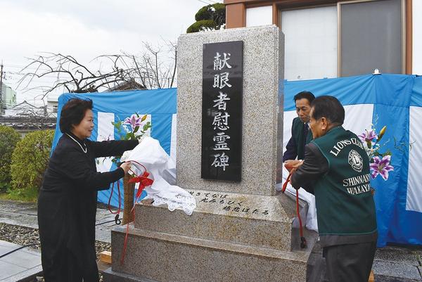 献眼者慰霊碑を建立 認証30周年で真福寺に