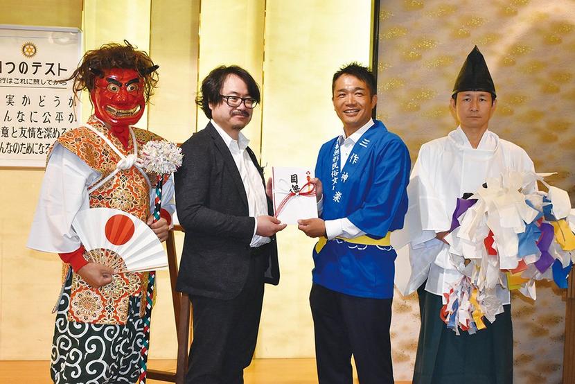 周南市の徳山ロータリークラブ(橋野成正会長、45人)は11日、和田の三作神楽保存会(佐藤貴志会長)に神楽の衣装3着を贈った。この日、遠石会館で開いた例会の席上...