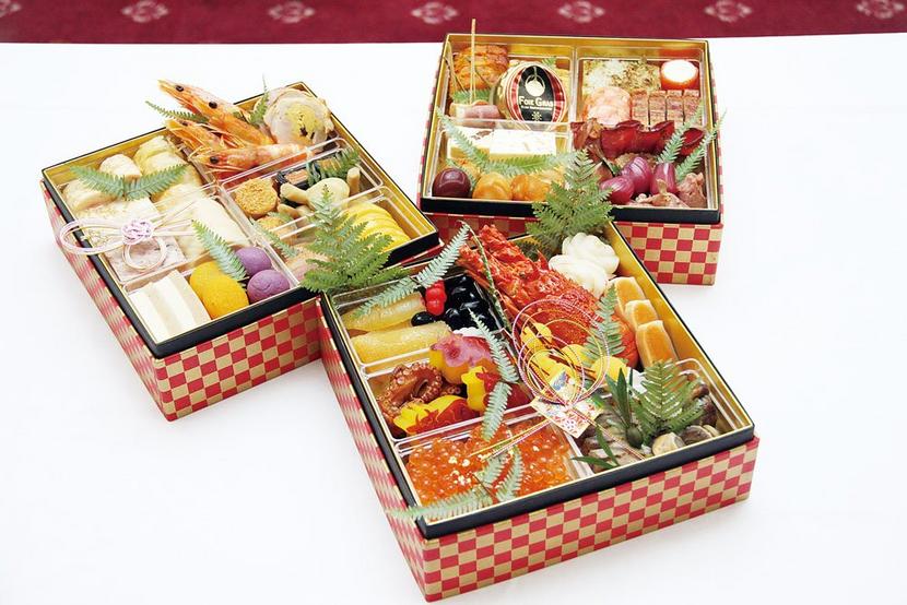 同ホテルのおせちは10年以上、地元に愛されている定番の商品で今回は2種類を用意する。「和洋折衷三段」は和と洋と和洋折衷がそれぞれ1段ずつ。イセエビの具足煮、フォアグラのムース、砂肝のコンフィなど約40種の豪華なメニューが新年を彩る。2万円。