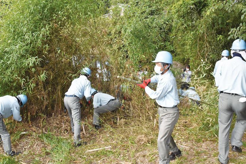 周南市の公園の竹林伐採 徳山製造所の発電所でバイオマス燃料に 社員がボランティア活動