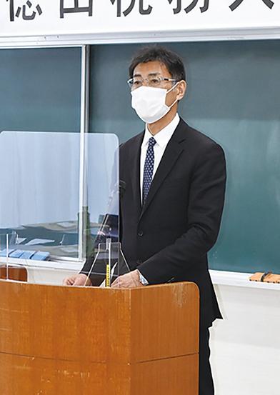 講話する小浜署長