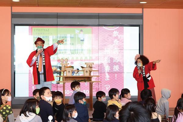 子ども60人に試食弁当 飲食店応援!招福春まつり ふく太郎・ふく子も駆けつけ