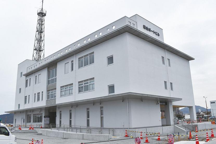 徳山ポートビルは建物の建設費だけで10億円。鉄筋コンクリート3階建て、2124・08平方メートル。1階が周防灘フェリー、大津島巡航の事務所、乗船券売り場、待合ホール▽2階が県周南港湾管理事務所▽3階が港湾関係の企業の事務所と徳山下松港ポートラジオ局。
