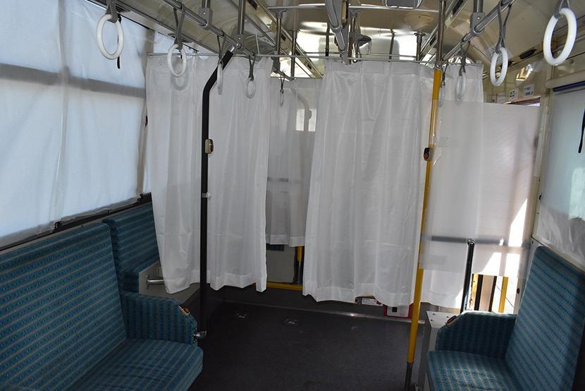カーテンで区切られた車内