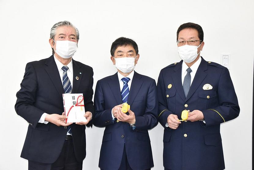 周南市桜馬場通の山口県民共済生活協同組合(三浦靖彦理事長)は22日、周南市内の小学校の新1年生のために防犯ブザー1,100個を贈った。この日、市役所の教育長室...