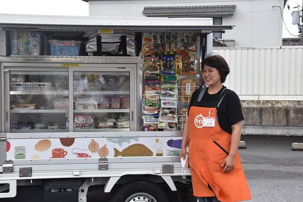 周南市の中心部を巡回する移動スーパー「とくし丸」の出発式が24日、花畠町のスーパー、アルク徳山中央店で開かれた。同店が提供する商品を軽トラックの移動店舗に積み...