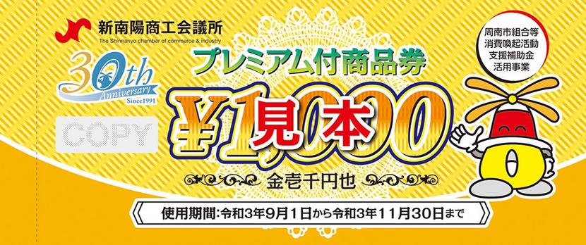 周南市の新南陽商工会議所で「令和3年プレミアム付周南市内商品券」の販売が1日から始まった。同所入り口の受付で購入することができ、支払いは現金のみ。時間は午前1...