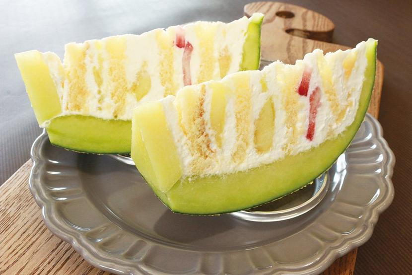 他にも“ねりきり”も秋仕様になっており“「月」と「うさぎ」”は237円。夜空の満月を見上げるうさぎが可愛らしくお月見にもお勧め。“melonのケーキ”はこの時期限定で毎年人気。メロンを縦に切り、生クリームとフルーツが層になった“写真映え”する鮮やかなもの。