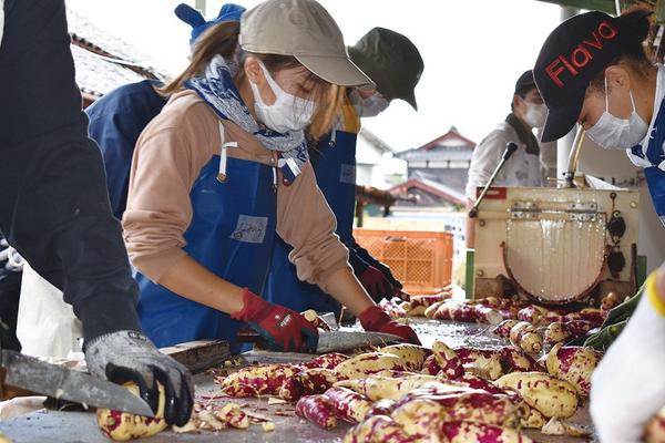 周南市久米の酒造会社の山縣本店(山縣俊郎社長)に23日、山口大学農学部の生物資源環境科学科の2、3年生9人が訪れ、自分たちが実習で栽培したサツマイモを加工して...