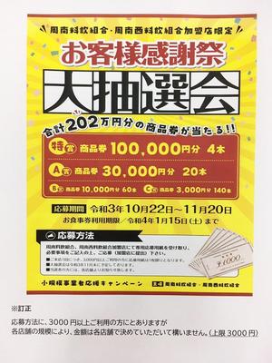 周南市の周南料飲組合と周南西料飲組合が両組合に加盟する店限定で合計202万円分の商品券が当たる「お客様感謝祭大抽選会」を22日から始めた。 今月22日〜11...
