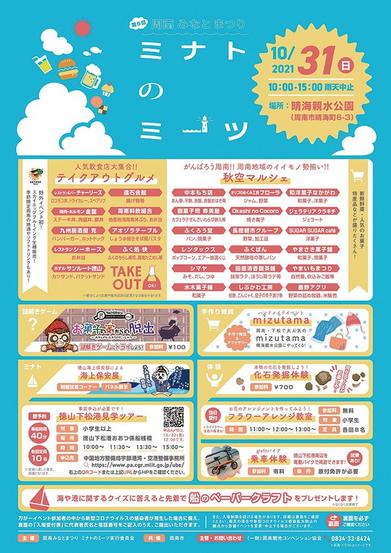 周南市の第5回周南みなとまつりミナトのミーツが31日(日)午前10時から、徳山港の晴海親水公園で開かれる。 徳山下松港の認知度の向上と市内産品の販売促進が狙...