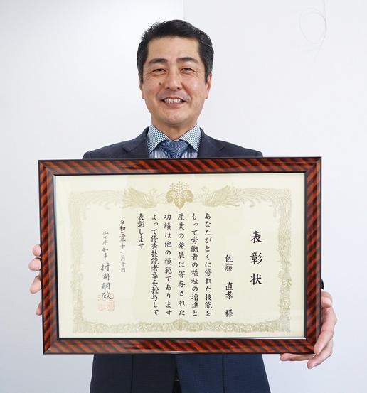佐藤社長は「父のやってきた事を見習い、頑張ってきてよかった。これまで周りの人々に支えてもらい感謝しかない。これからも探究心と向上心を持って仕事に向き合い、後継者を育てていきたい」と喜んだ。
