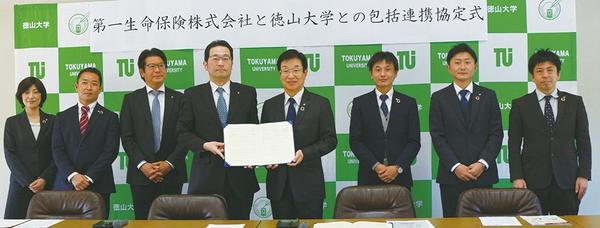 山口県周南市学園台の徳山大学(高田隆学長、986人)は11月29日、第一生命保険山口支社(西原和也支社長)と包括連携協定を結び、調印式が開かれた。同社が支社単...
