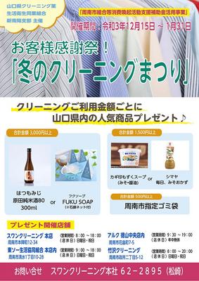 山口県周南市本陣町のスワンクリーニング本店、清水の東ソー生活協同組合本店内、花畠町のアルク徳山中央店、政所の竹沢クリーニングの4店舗で、クリーニングの利用金額...