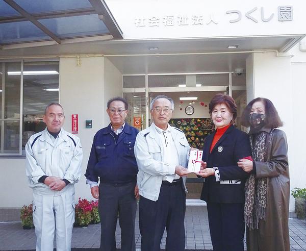 山口県周南市の国際ソロプチミスト新南陽(原田常代会長)は6日、米光の障害者支援施設つくし園(福田之広施設長)に5万円を贈った。この日、原田会長、青木京子広報委...