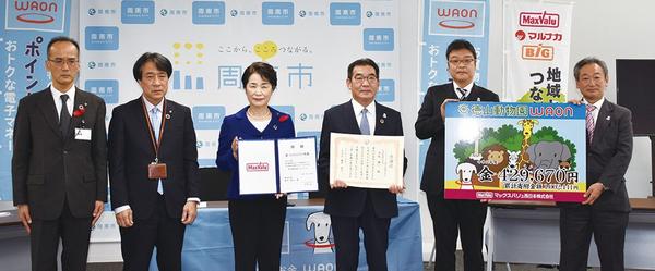 マックスバリュ西日本(平尾健一社長、本社・広島市南区)が9日、山口県周南市の周南市役所を訪れ、徳山動物園の充実に貢献する「徳山動物園WAON」利用金額の一部の...