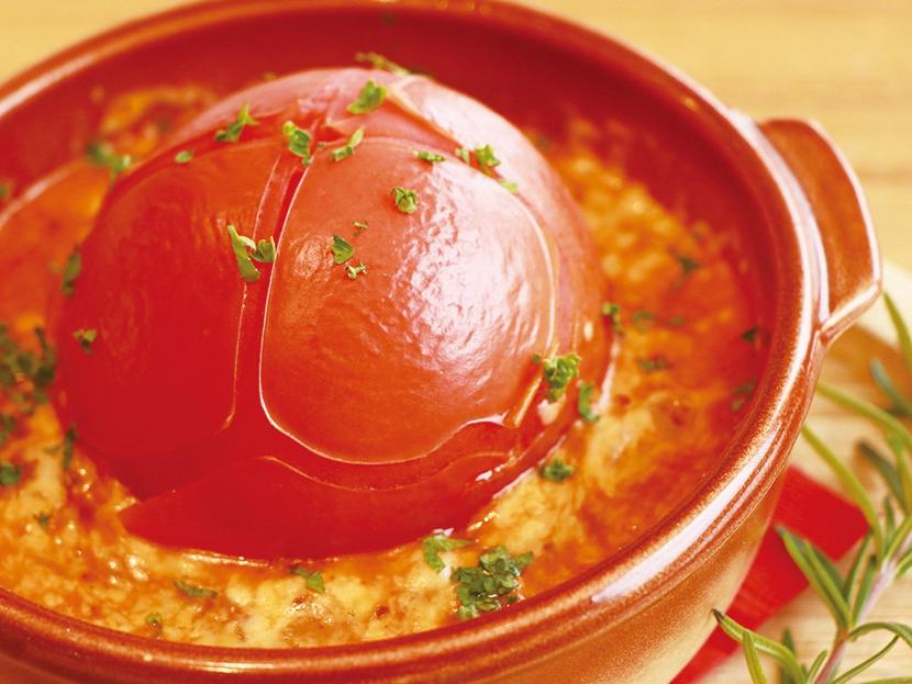 地産地消レストラン ベーカリーキッチン「菜」:トマトを丸ごと1個使った鉄鍋ドリア