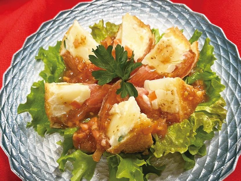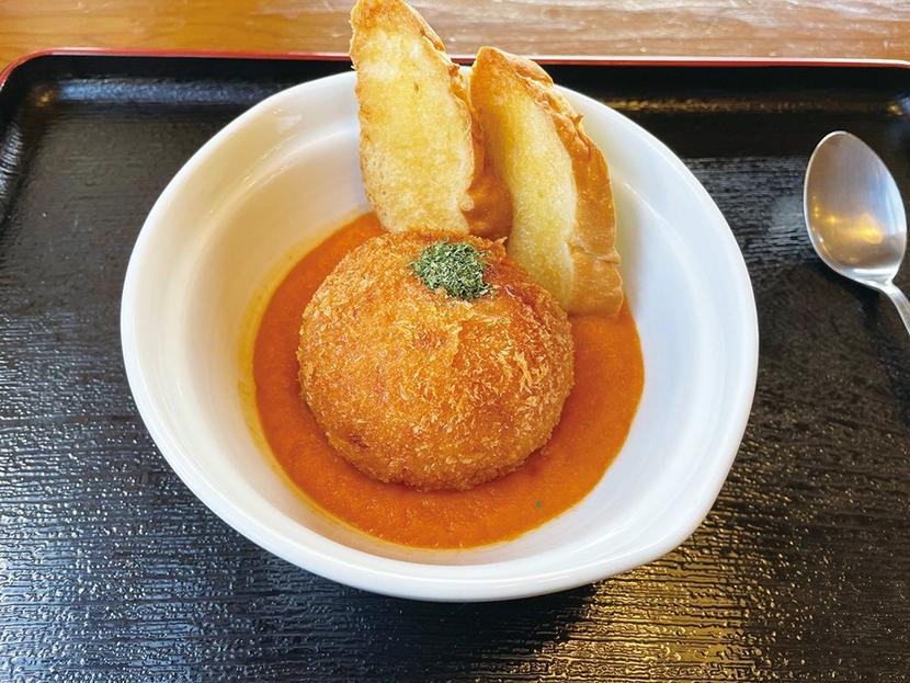 ゆの温泉 芳山園:周南たこ入り 周南トマト丸ごとクリームコロッケ~特製トマトソース添え