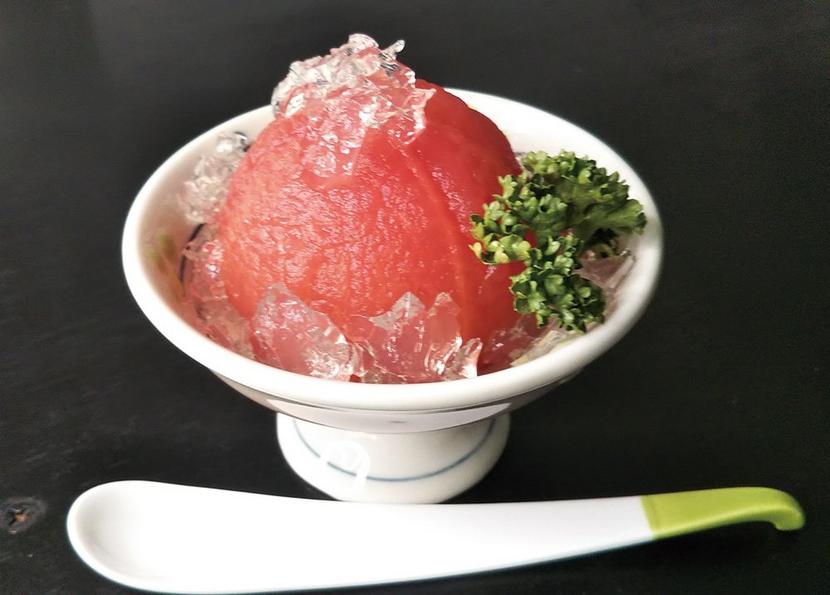 石船温泉:トマトのワイン煮(メニュー名:私はトマトです)