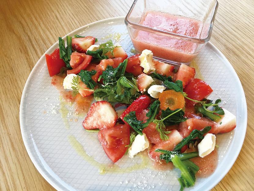vec:周南イチゴと春菊とクリームチーズのサラダ 周南トマトドレッシング