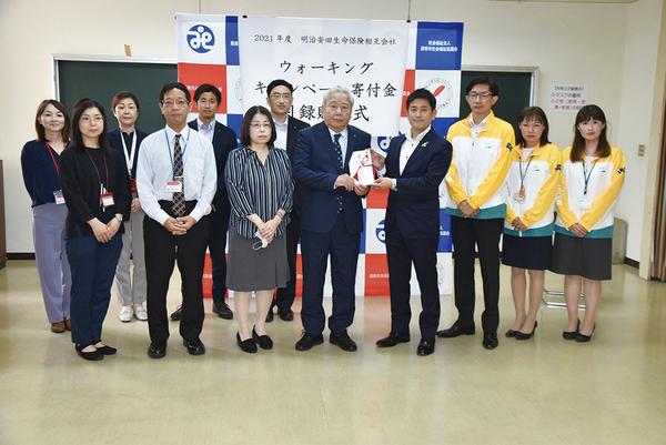 明治安田生命が10万円 ウオーキング上位の徳山支社が周南市社協へ