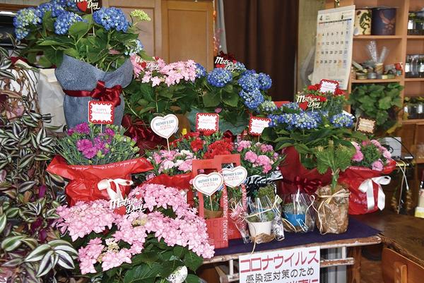 8日(日)は母の日。山口県周南市久米の花匠では8日に向け、カーネーションやアジサイの鉢植えやアレンジメントをたくさん用意している。 今年はアジサイがたくさん...