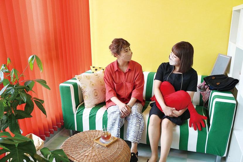 待合室で話す福本さん(左)と杉本さん