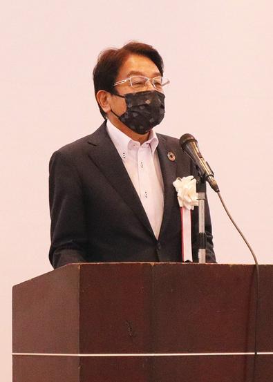 あいさつする平岡会長
