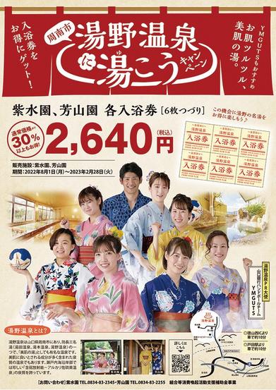 山口県周南市の湯野温泉をお得に利用できる「湯野温泉に湯(ゆ)こうキャンペーン」が始まっている。紫水園と芳山園で使える入浴券販売は湯野温泉事業協同組合▽両施設の...
