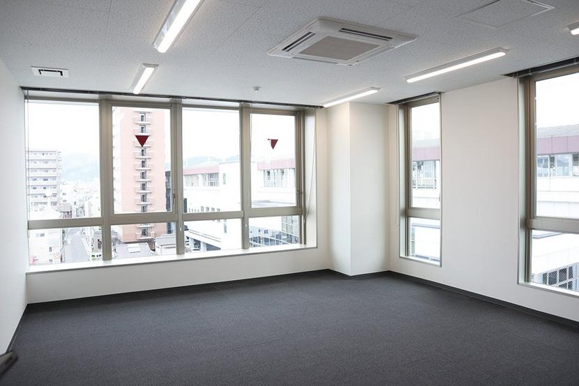 LED照明、高さ2.65メートルの天井と電気コードを床下に配置できるOAフロアで、広々と快適な空間になっている。換気可能な開閉式の窓、非接触型のエレベーターボタンなど、新型コロナウイルスなどの感染予防にも配慮した。