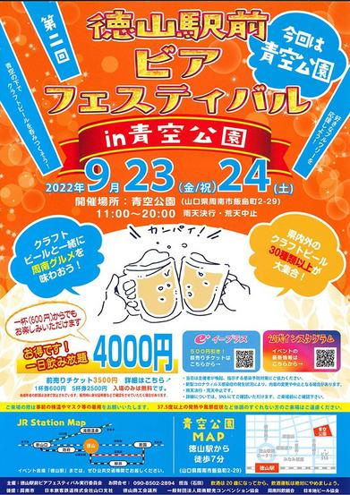 第2回徳山駅前ビアフェスティバルin青空公園が23日(金・祝)、24日(土)の午前11時から午後8時まで、山口県周南市飯島町の青空公園で開かれる。 県内外の...
