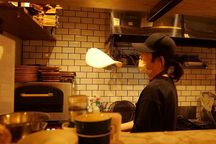 店主の山根佳浩さん(33)は10代の頃からピザの世界に入り、2016年に自身の店を開いた。以前はピザをオーブンで5分かけて焼いていたが、新店舗のピザ窯は約2分で焼き上げる。早く焼くことで具材の水分を保ち、毎日手づくりの生地も外はパリッと、中はふっくら焼け、よりおいしいピザを提供できるようになった。