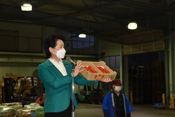 山口県周南市地方卸売市場の鼓海の花き市場の初競りが4日、青果市場と晴海町の水産物市場の初競りが5日に開かれた。青果市場の初競りでは藤井律子市長が新南陽地区から...